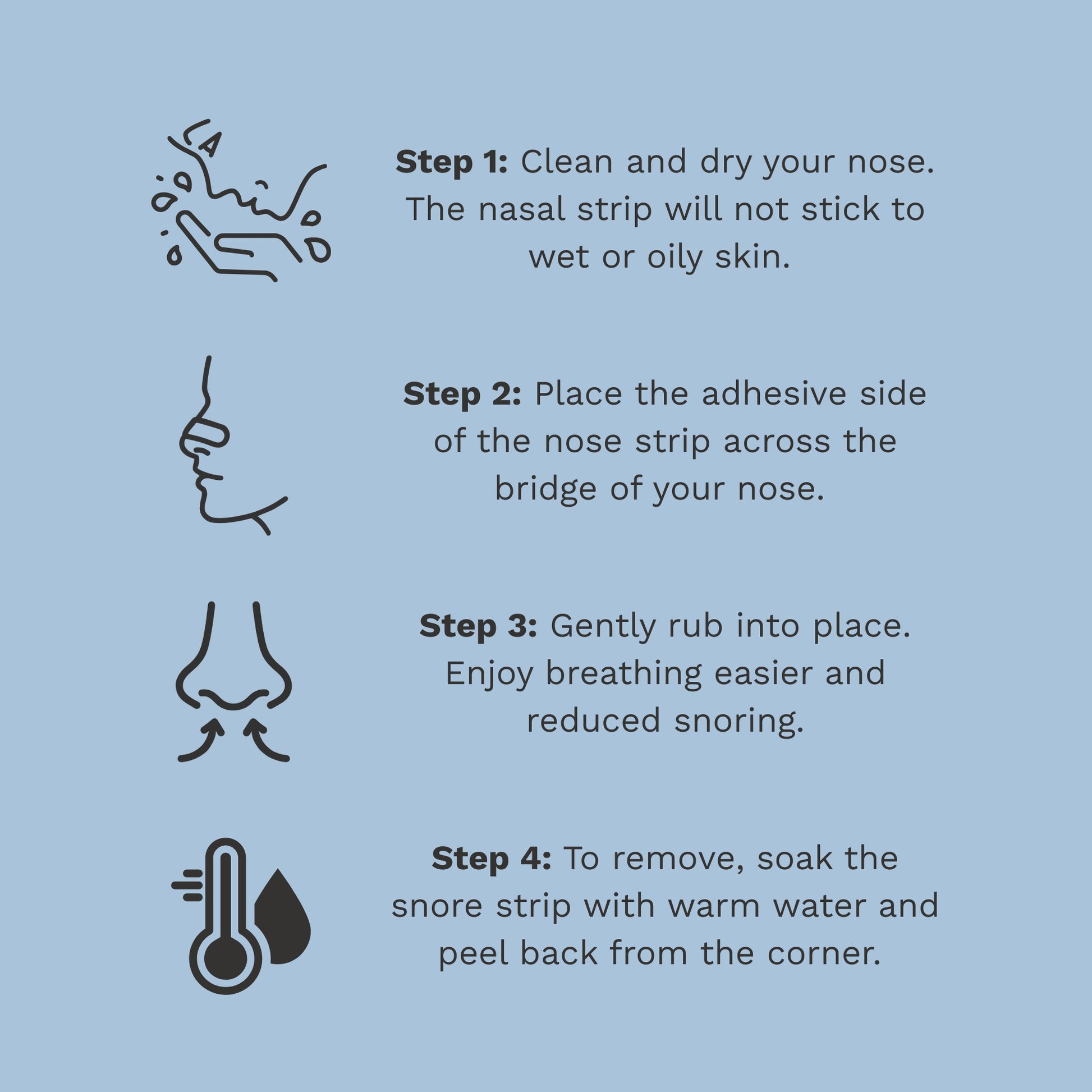★ APPLY WATER FOR EASY REMOVAL - As our nasal strips have been specifically developed to most effectively adhere to your skin, we recommend soaking the plaster with warm water to loosen the adhesive before removal.